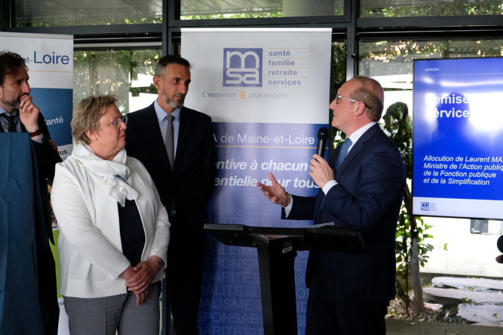 Aux côtés du Préfet et du Sénateur Emmanuel Capus, nous avons commencé cette journée par une visite à la MSA d’Angers. Les équipe de cette caisse de protection sociale dédiée au monde agricole nous ont chaleureusement accueilli et présenté leur organisation et leurs locaux. Leur engagement a été salué par l’attribution du label « Service Public + », une reconnaissance à la hauteur de leur professionnalisme.